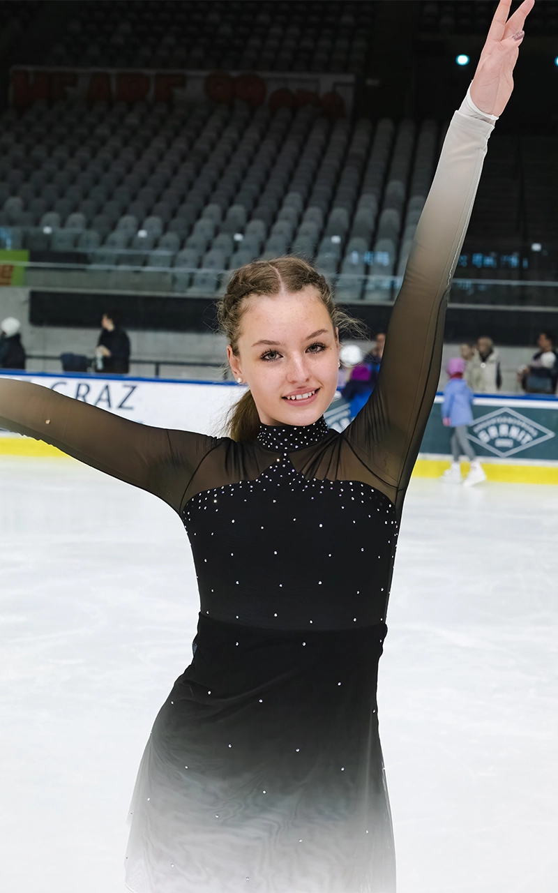 Teresa hat mit neun Jahren ihre Leidenschaft für das Eiskunstlaufen entdeckt – nach einer soliden Ballettausbildung, die ihr heute noch bei der Kürgestaltung zugutekommt. Als mehrfache steirische Landesmeisterin im Jugend- und Seniorenbereich sowie Teilnehmerin an Europacups sammelte sie viele Erfahrungen im aktiven Wettkampfsport. Seit 2014 ist sie staatlich geprüfte Instruktorin für Eiskunstlauf. Ihr sportliches Know-how setzt sich aus ihrer fundierten Ausbildung im Bereich Sportwissenschaft, Yoga und ihrer Tätigkeit als Trainerin zusammen. Mit viel Feingefühl, Kreativität und fachlicher Kompetenz studiert sie mit unseren Läuferinnen und Läufern die Küren ein und begleitet sie mit Leidenschaft auf ihrem sportlichen Weg.